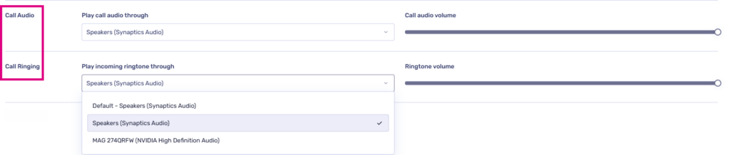 - The correct audio output is selected within the ‘Call audio’ section of sound settings (desktop versions)