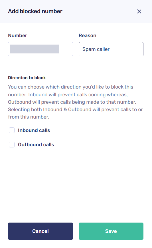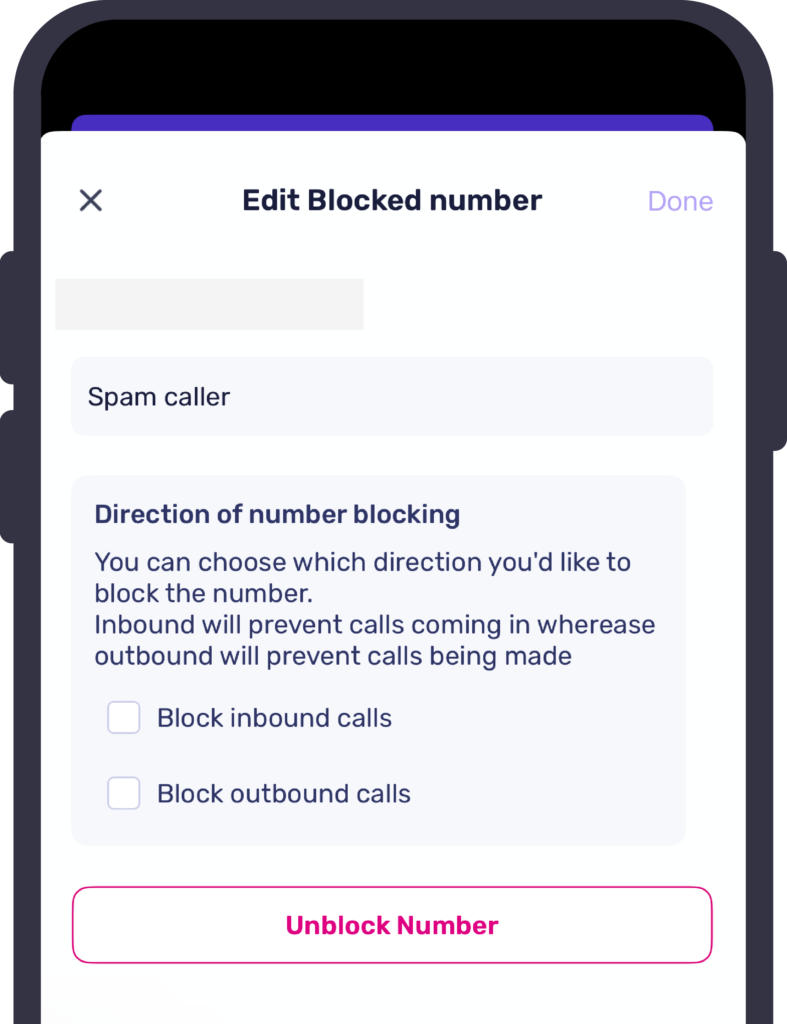 As a PhoneLine+ Admin user, you have the ability to block specific numbers as needed.