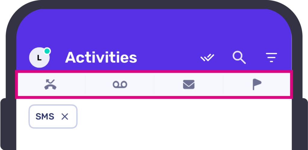 Tap the magnifying glass to search your call activity, or the bars to filter your call activity by: