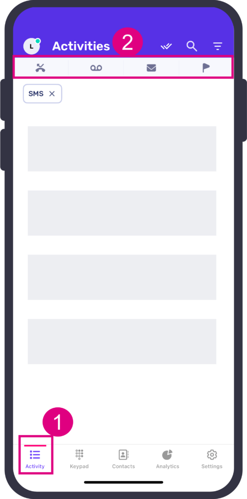 To view your call history on mobile devices, simply tap the ‘Activity’ icon at the bottom of the screen.