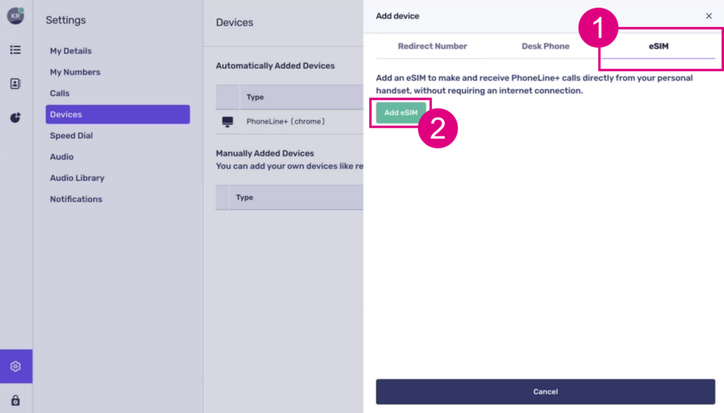 Currently, eSIM can only be activated via the desktop version of PhoneLine+. If you are using a mobile version of the service, please reach out to your service provider.