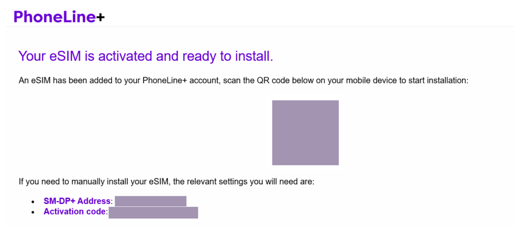 Once your eSIM is activated and prepared for installation, you will receive an email at the address linked to your PhoneLine+ account which will notify you that it is ready to use.