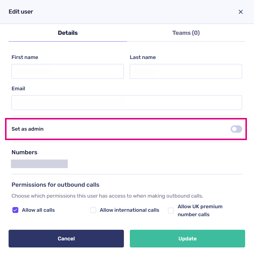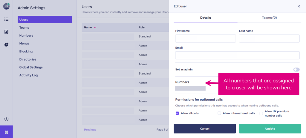 • If your account has international or UK premium numbers activated, you can choose whether users are permitted to make these types of calls