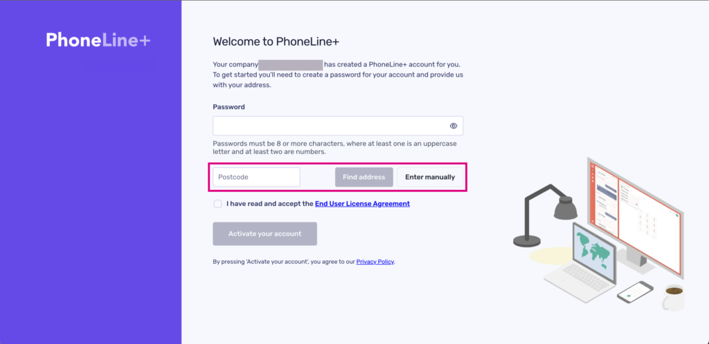 Once PhoneLine+ has been provisioned, your service provider will send you a welcome email inviting you to start the registration process.