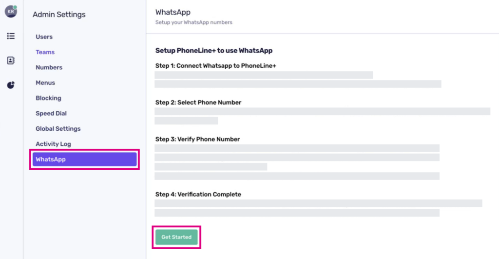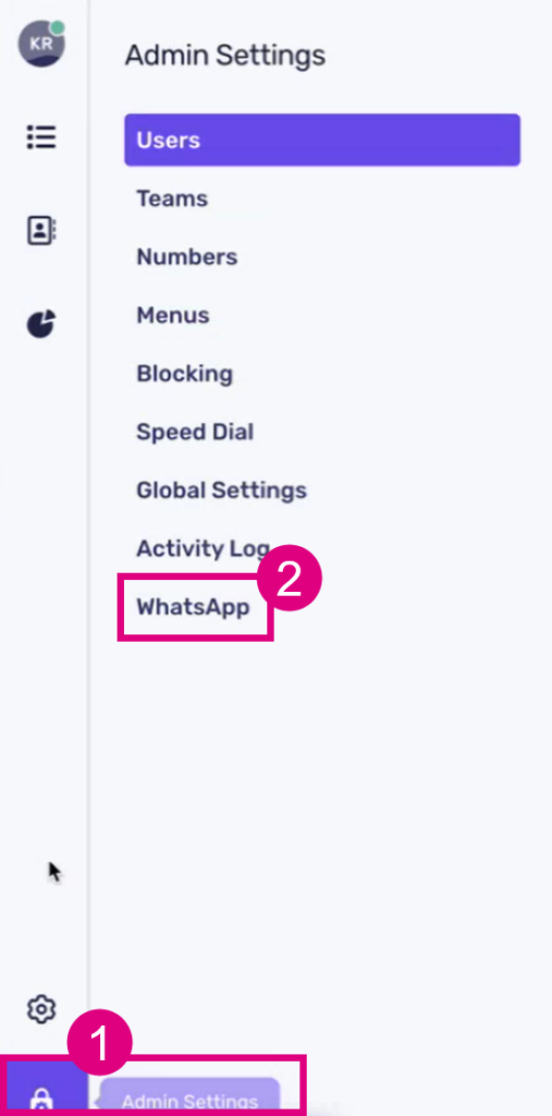 Navigate to your Admin settings, then click ‘WhatsApp’.