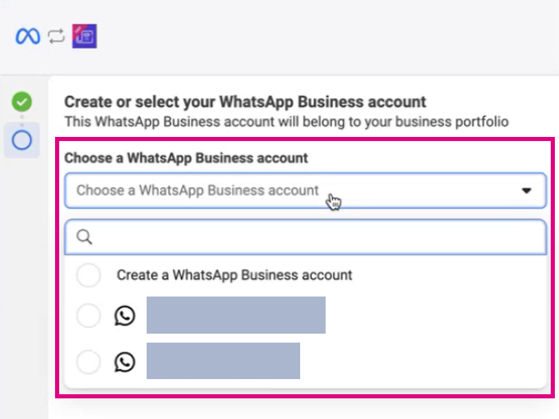 Similarly to the steps above, you will now need to select (or create) a WhatsApp Business account.
