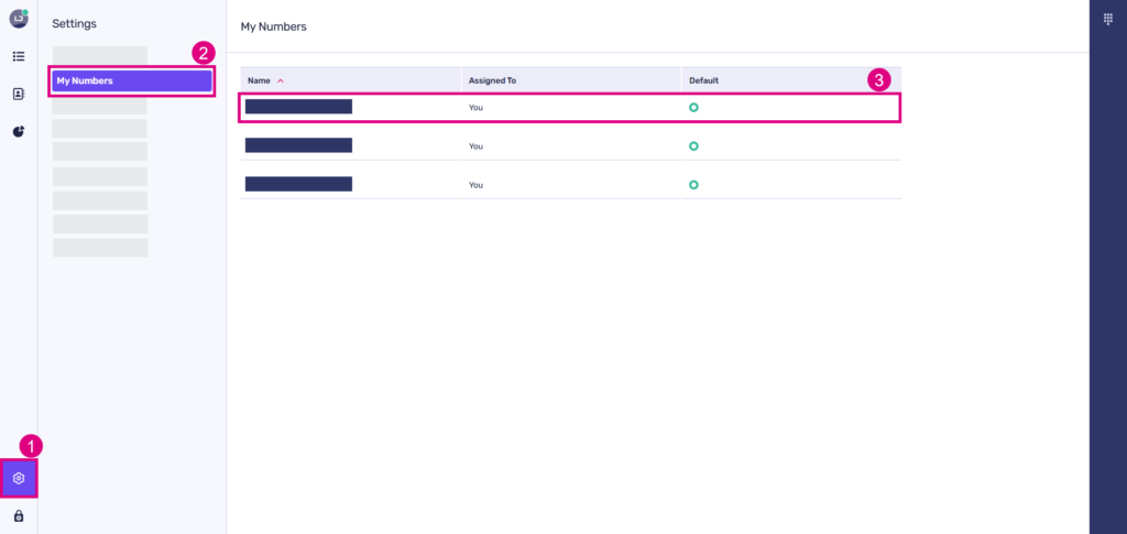 Select your default number from the list shown here (if more than one number has been assigned to your account). Please contact your account Administrator if no numbers appear on this screen.
