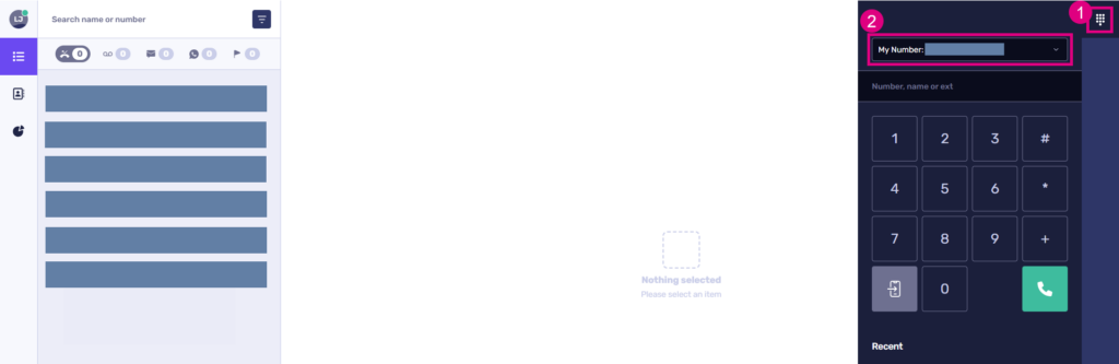 If you have more than one number associated with your account, you can change numbers from the dialler menu, as shown below.